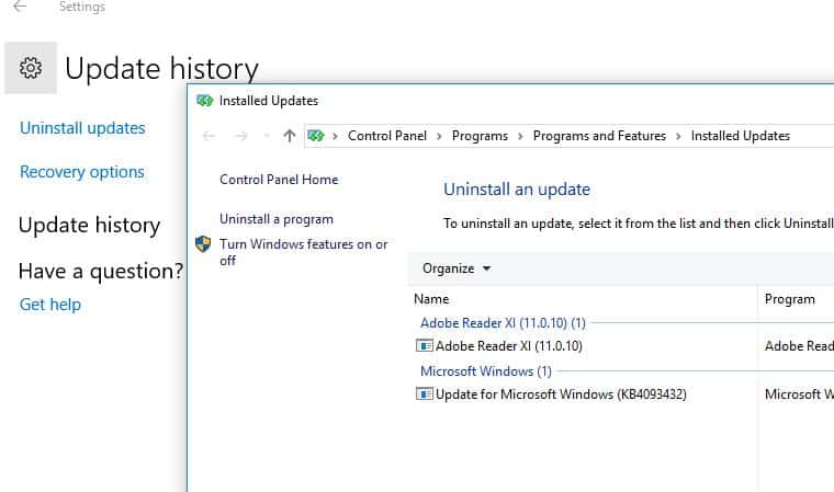Απεγκαταστήστε τις ενημερώσεις των Windows