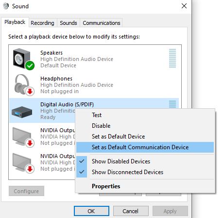 - Στην καρτέλα Αναπαραγωγή, βεβαιωθείτε ότι υπάρχει πράσινος έλεγχος δίπλα στη συσκευή ήχου σας (σημαίνει ότι αυτή η συσκευή είναι η προεπιλεγμένη συσκευή αναπαραγωγής)