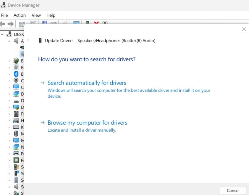 Ένας παλαιότερος ή ξεπερασμένος οδηγός ήχου μπορεί να προκαλέσει φορητό υπολογιστή που δεν λειτουργεί μετά την ενημέρωση των Windows 11. Ας ενημερώσουμε το πρόγραμμα οδήγησης ήχου στην τελευταία έκδοση που πιθανώς βοηθά στη διόρθωση του προβλήματος.