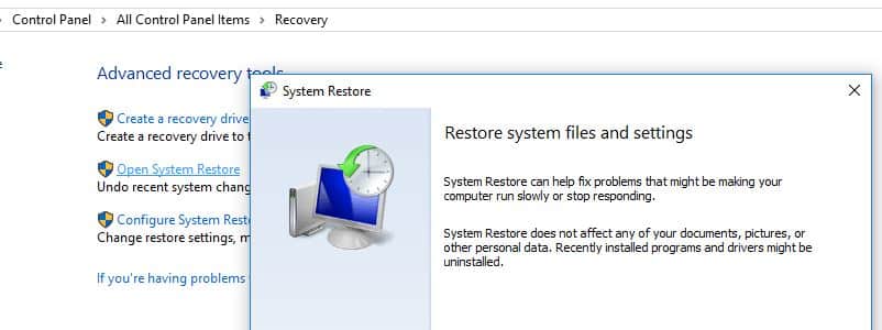 Εάν η κάμερα λειτουργούσε σωστά στο παρελθόν και το πρόβλημα προέκυψε μετά από μια πρόσφατη αλλαγή, εκτελέστε αεπαναφορά συστήματοςσας επιτρέπει να επαναφέρετε το σύστημά σας σε προηγούμενη κατάσταση πριν παρουσιαστεί το πρόβλημα. Αυτό μπορεί να βοηθήσει στην αναίρεση τυχόν αλλαγών που μπορεί να οδήγησαν σε δυσλειτουργία της κάμερας.