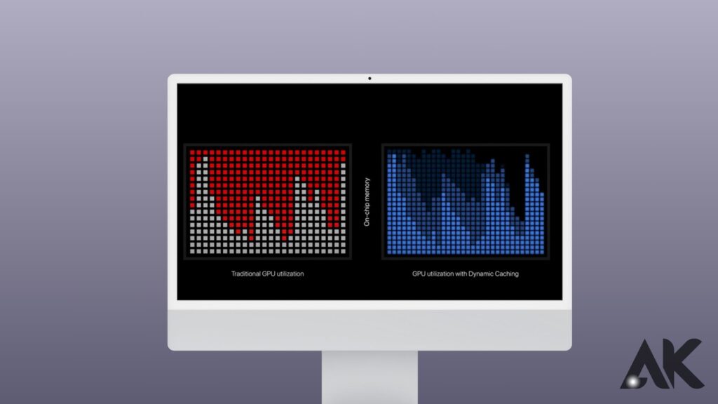 Για τη σειρά M3, η αλλαγή της διαδικασίας είναι σημαντική, αλλά η Apple προωθεί επίσης μια εντελώς νέα αρχιτεκτονική GPU. Αυτό το κύριο χαρακτηριστικό της αρχιτεκτονικής είναι η δυναμική προσωρινή αποθήκευση, η οποία στοχεύει στην ενίσχυση της ταχύτητας μόνο καταναλώνοντας μόνο την ακριβή ποσότητα μνήμης που απαιτείται για τις δραστηριότητες, αυξάνοντας έτσι τη μέση χρήση της GPU.