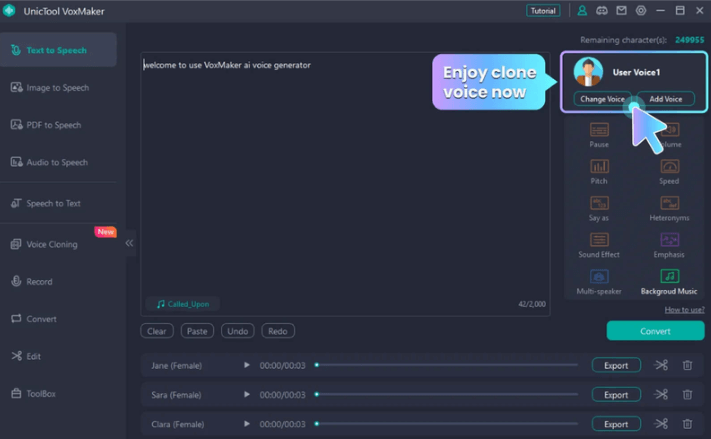 Με απεριόριστες δυνατότητες για το είδος, το ρυθμό και το στυλ, τοΓεννήτρια τραγουδιών K-Popδίνει τη δυνατότητα στους μουσικούς να δημιουργούν πραγματικά πρωτότυπες και μοναδικές επιτυχίες. Αυτό που θέτει το Voxmaker εκτός από άλλες γεννήτριες τραγουδιών είναι η λειτουργία κλωνοποίησης φωνής AI, επιτρέποντάς σας να προσθέσετε μια εξατομικευμένη πινελιά στα τραγούδια κάλυψης K-Pop.