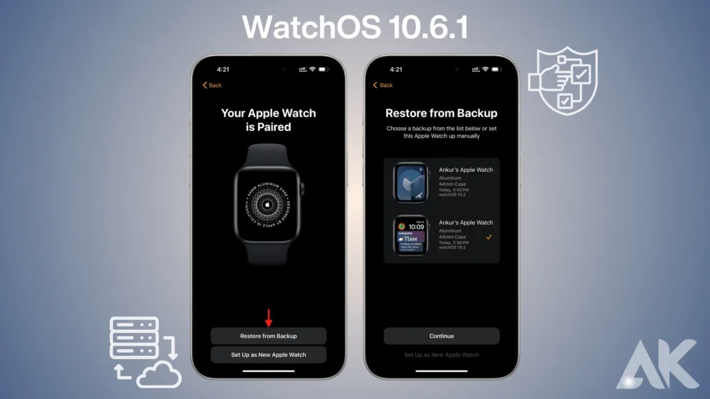 Για να προστατεύσετε τα στοιχεία σας, πρέπει να δημιουργήσετε αντίγραφα ασφαλείας του ρολογιού της Apple πριν εγκαταστήσετε το WatchOS 10.6.1. Είναι πάντα καλή ιδέα να έχετε ένα αντίγραφο ασφαλείας, παρόλο που οι ενημερώσεις συνήθως πηγαίνουν ομαλά. Όταν συνδυάζετε το Apple Watch με το iPhone σας, υποστηρίζει αμέσως τα δεδομένα του. Αυτό περιλαμβάνει τα δεδομένα της εφαρμογής, τις ρυθμίσεις και τις προτιμήσεις σας.