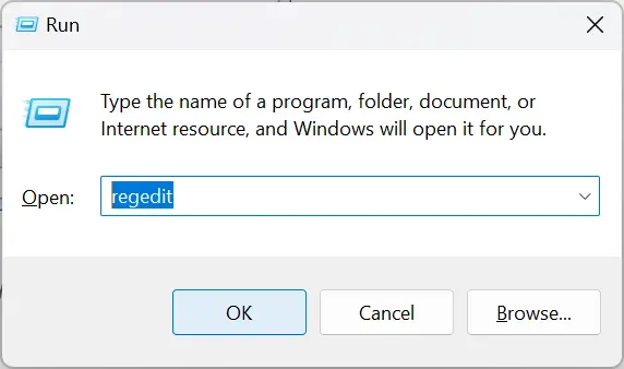 1. Πατήστε WIN+R και πληκτρολογήστε Regedit και πατήστε Enter.