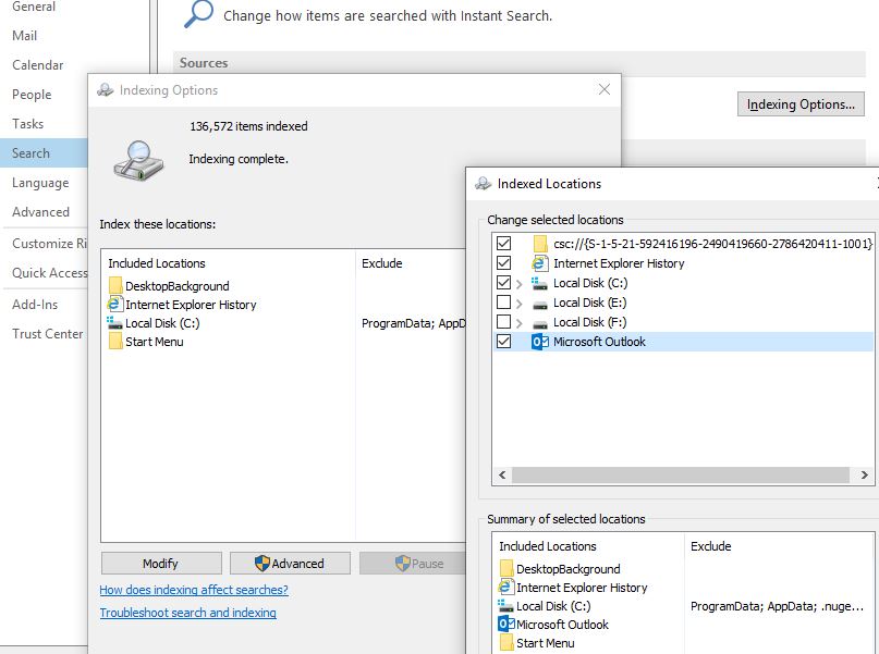 - Κάντε κλικ στην επιλογή "OK" και επανεκκίνηση του Outlook για να εφαρμόσετε τις αλλαγές. Δοκιμάστε τη λειτουργικότητα αναζήτησης για να δείτε εάν το ζήτημα παραμένει.