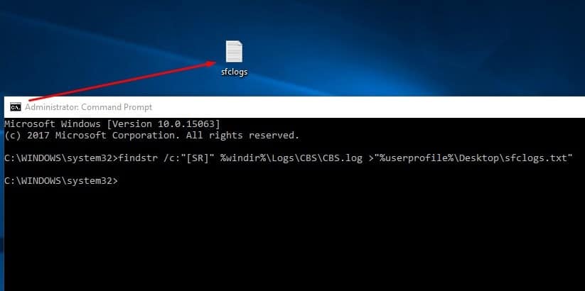 FindStr /C: "[SR]"%Windir%logscbscbs.log> "%UserProfile%Desktopsfclogs.txt