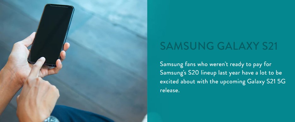 Οι οπαδοί της Samsung που δεν ήταν έτοιμοι να πληρώσουν για τη σειρά S20 της Samsung, πέρυσι, έχουν πολλά να είναι ενθουσιασμένοι με την επερχόμενη έκδοση Galaxy S21 5G. Η εστίαση της Samsung ήταν στη δημιουργία μιας λιγότερο δαπανηρής συσκευής που εξακολουθούσε να προσφέρει πολλά από τα ίδια συρραπτικά νεογνά, συμπεριλαμβανομένων πολλαπλών φακών κάμερας πρώτης τάξης, μεγάλη διάρκεια ζωής της μπαταρίας και ένα ισχυρό chipset. Η σειρά S21, η οποία έχει προγραμματιστεί να κυκλοφορήσει στα τέλη Ιανουαρίου, θα περιλαμβάνει ένα μοντέλο βάσης S21 5G, καθώς και τα S21+ 5G και S21 5G Ultra.