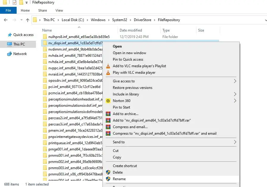 - Κάντε δεξί κλικ στο φάκελο NVIDIA Graphics και επιλέξτε «Μετονομασία».