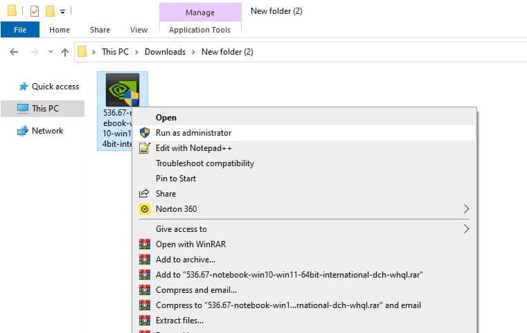 - Εντοπίστε το ληφθένΠρόγραμμα οδήγησης GeForce Game Readyαρχείο εγκατάστασης (συνήθως τελειώνει με ".exe").