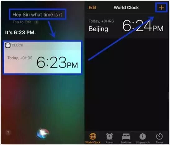 Βήμα 2.Ρωτήστε τον Siri, "Τι ώρα είναι;" Η τρέχουσα ώρα θα εμφανιστεί ως αποτέλεσμα αναζήτησης στο παγκόσμιο ρολόι.