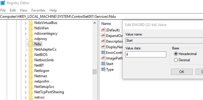 - Hkey_local_machine>ΣΥΣΤΗΜΑ>ControlSet001> Υπηρεσίες> NDU.