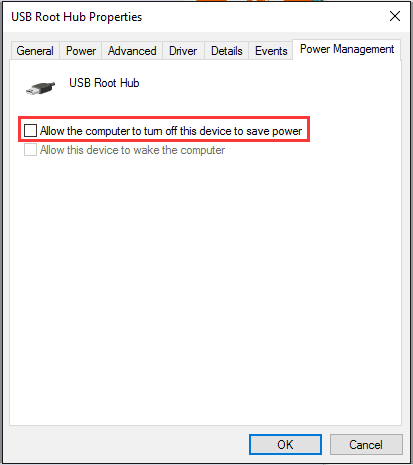 Απενεργοποιήστε την Επιλογή εξοικονόμησης ενέργειας για το πρόγραμμα οδήγησης USB