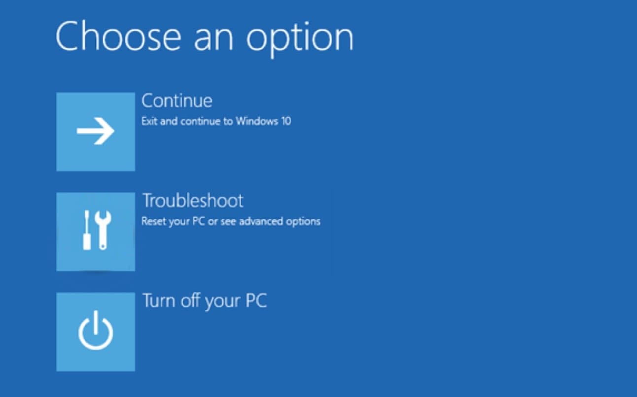 - Όταν ο υπολογιστής κάνει επανεκκίνηση στοΕπιλέξτε μια οθόνη επιλογών, επιλέξτεΑντιμετώπιση προβλημάτων