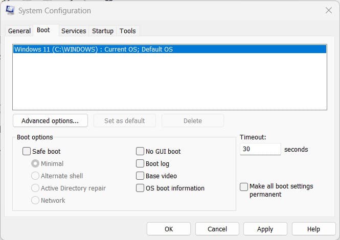 Εκκινήστε τα Windows 11 σε ασφαλή λειτουργία κατά την εκκίνηση