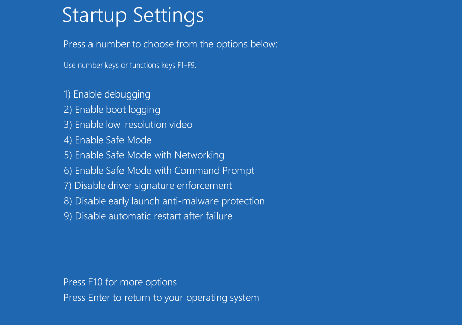 - Όταν ανοίξει η οθόνη ρυθμίσεων εκκίνησης Πατήστε4για να ξεκινήσετε τον υπολογιστή σας σε ασφαλή λειτουργία ή5για να χρησιμοποιήσετε την ασφαλή λειτουργία με το Διαδίκτυο.
