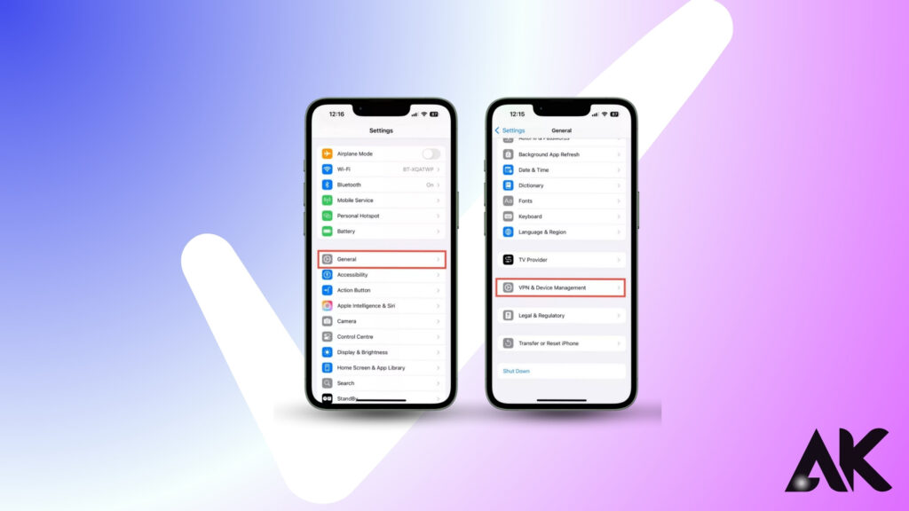 - ΠηγαίνωΡυθμίσεις>Γενικός>Διαχείριση VPN & Device.
