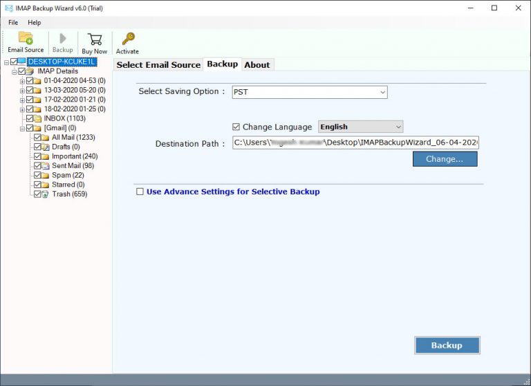 Προκειμένου να εισαγάγετε μηνύματα ηλεκτρονικού ταχυδρομείου από το ηλεκτρονικό ταχυδρομείο One.com στο λογαριασμό Gmail, πρέπει πρώταΚατεβάστε το εργαλείο δημιουργίας αντιγράφων ασφαλείας IMAP Mail για Windows. Αυτό το λογισμικό είναι συμβατό με όλες τις τελευταίες και παλαιότερες εκδόσεις των λειτουργικών συστημάτων Microsoft Windows όπως τα Windows 10, Windows 8.1, Windows 8, Windows 7, Windows XP, Windows Vista κ.λπ.