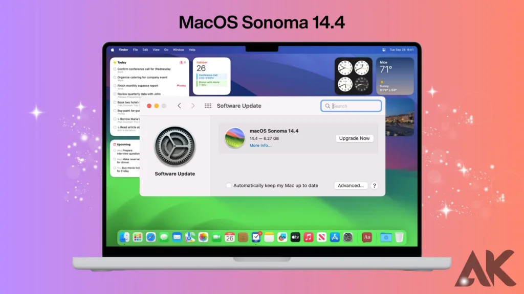 Το MacOS 14.4 το 2024 προσφέρει ατελείωτες δυνατότητες δημιουργικότητας και παραγωγικότητας. Το λειτουργικό σύστημα ενσωματώνει διαισθητικά εργαλεία, βελτιωμένα μέτρα ασφαλείας και βελτιωμένες ροές εργασίας. Η τελευταία ενημέρωση, MacOS Sonoma 14.4, περιλαμβάνει νέα χαρακτηριστικά όπως η ανάγνωση των επεισοδίων podcast, η εισαγωγή νέων emojis και η βελτίωση των μηνυμάτων της Apple για επιχειρηματικές υπηρεσίες. Η ενημέρωση περιλαμβάνει επίσης 64 μπαλώματα ασφαλείας για ελαττώματα σε διάφορες εφαρμογές, συμπεριλαμβανομένων μηνυμάτων, μουσικής, σημειώσεων, φωτογραφιών, σαφάρι, συντομεύσεις, Siri και Apple TV. Η Apple κυκλοφόρησε επίσης νέες εκδόσεις WatchOs, TVOS, HomePod OS και VisionOS, συμπεριλαμβανομένων των χαρακτηριστικών για το Apple Watch και βελτιωμένα μέτρα ασφαλείας.