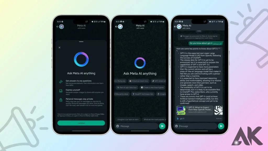 Το Meta AI WhatsApp είναι μια εφαρμογή συνομιλίας αιχμής που χρησιμοποιεί το AI για να αλλάξει πραγματικά τον τρόπο με τον οποίο οι άνθρωποι μιλούν ο ένας στον άλλο. Το Meta AI WhatsApp είναι διαφορετικό από άλλες εφαρμογές μηνυμάτων επειδή χρησιμοποιεί προηγμένους αλγόριθμους για να εξετάσουμε τον τρόπο με τον οποίο οι χρήστες αλληλεπιδρούν με αυτό και τους δίνουν εξατομικευμένες απαντήσεις σε πραγματικό χρόνο.