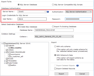 - Μετά τη σάρωση,Προεπισκόπηση των αρχείωνκαιΚάντε κλικ στο κουμπί Εξαγωγή. Προσθέστε τα απαιτούμεναδιαπιστευτήρια ελέγχου ταυτότηταςτης βάσης δεδομένων προορισμού SQL Server.