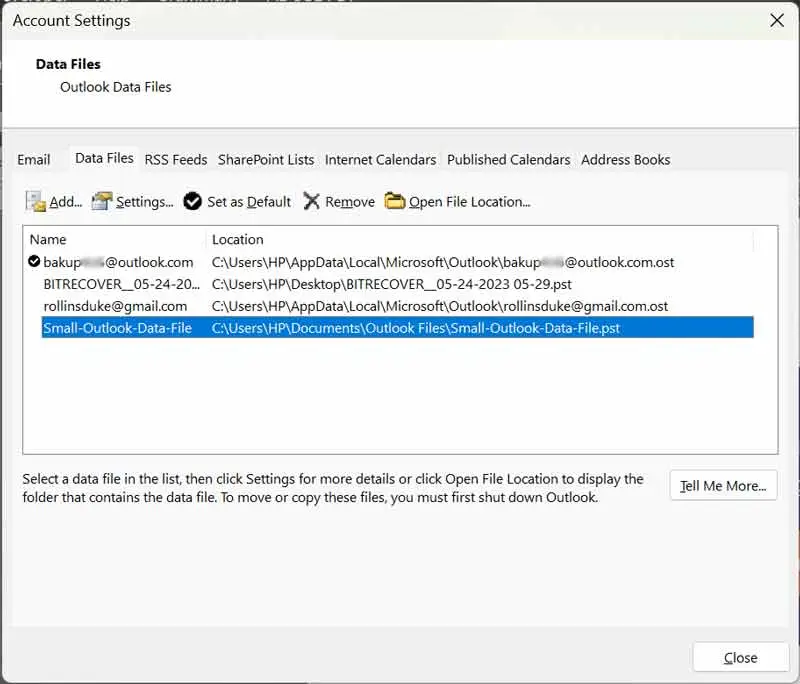 Ποια αρχεία δεδομένων Outlook πρέπει να ανοίξουν από το Outlook;