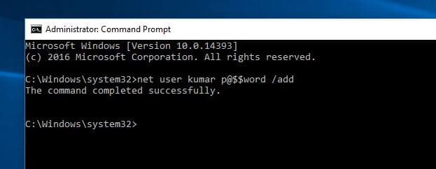 Επίσης, οι χρήστες προτείνουν τη δημιουργία ενός νέου προφίλ λογαριασμού χρήστη να τους βοηθήσει να διορθώσουν το σφάλμα 0x800704EC Windows Store App έχει αποκλειστεί. Απλώς ανοίξτε τη γραμμή εντολών ως διαχειριστής, πληκτρολογήστεNET NET USERNAME /ADD ADD