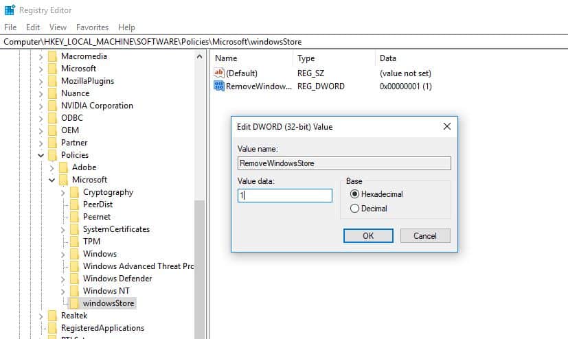 - Hkey_local_machinesoftwarepoliciesmicrosoftwindowsstore