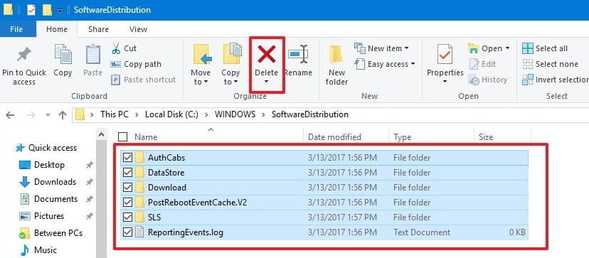 - Περιηγηθείτε ξανάΓ: WindowsSoftwaredIntributyΚαι διαγράψτε τα πάντα μέσα σε αυτόν τον φάκελο.