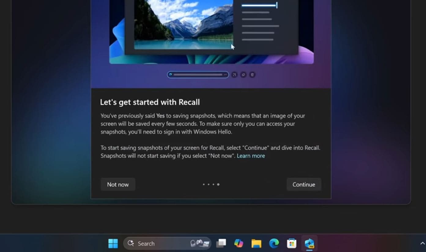 Το Recall είναι ένα χαρακτηριστικό που λειτουργεί με AI αποκλειστικό για το Copilot+ PCS με 45+ TOPS NPU. Καταγράφει στιγμιότυπα της οθόνης σας κάθε λίγα δευτερόλεπτα και τα αποθηκεύει σε τοπικό επίπεδο. Εκτελεί OCR για να εξαγάγει κείμενο και χρησιμοποιεί AI για κατανόηση συμφραζομένων. Αυτό σας επιτρέπει να αναζητήσετε τις στιγμές που χρησιμοποιούν την καθημερινή γλώσσα και να επιστρέψετε στο χρόνο.