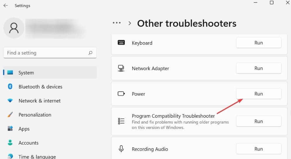 Εάν αντιμετωπίζετε ασυνήθιστα προβλήματα αποστράγγισης μπαταριών στο φορητό υπολογιστή σας Windows 11, εκτελέστε το ενσωματωμένο Power Prulshooter για να αναζητήσετε και να επιλύσετε τυχόν ζητήματα που σχετίζονται με μπαταρίες.