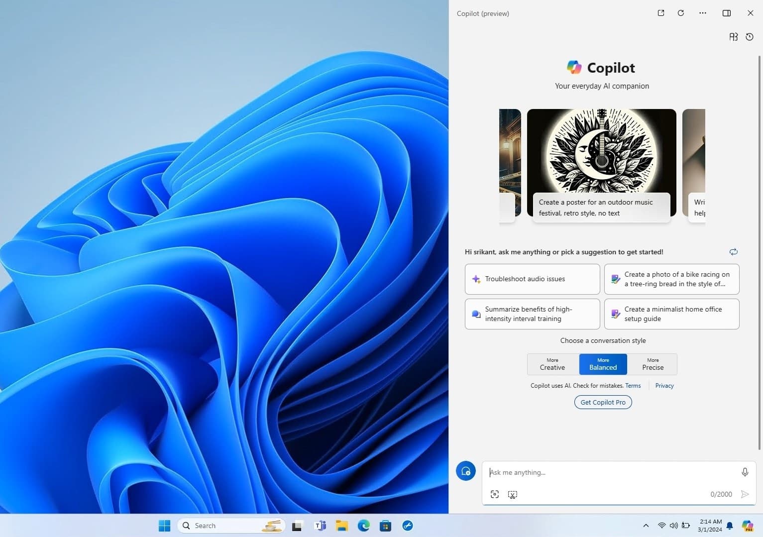 Το επισημασμένο χαρακτηριστικό τουWindows 11 Moment 4 Updateείναι η εισαγωγή του Microsoft Copilot. Ο βοηθός του AI είναι ενσωματωμένος απρόσκοπτα στα Windows 11, παρέχοντας στους χρήστες τη δύναμη της τεχνητής νοημοσύνης για να εξορθολογίσουν διάφορα καθήκοντα στο λειτουργικό σύστημα και υποστηριζόμενες εφαρμογές. Χρησιμοποιώντας το Microsoft Copilot, μπορείτε να αλλάξετε τις ρυθμίσεις του συστήματος, να αναλύετε τα έγγραφα και τις ιστοσελίδες, να προγραμματίσετε ραντεβού και ακόμη και να λάβετε βοήθεια στη σύνθεση ενός μηνύματος ηλεκτρονικού ταχυδρομείου.