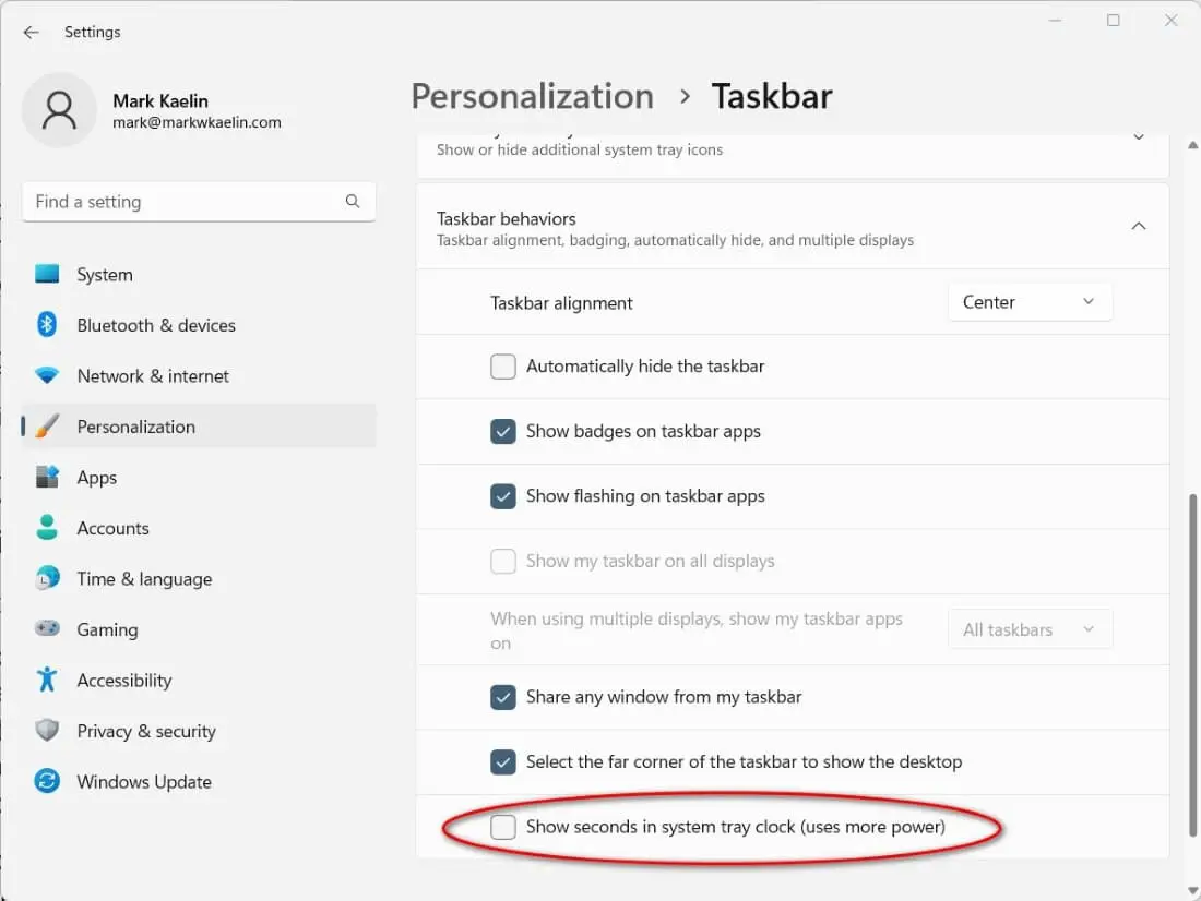 Εμφάνιση δευτερολέπτων στο ρολόι της γραμμής εργασιών:Η σημερινή ενημέρωση φέρνει τη δυνατότητα εμφάνισης δευτερολέπτων στο ρολόι της γραμμής εργασιών. Η λειτουργία είναι απενεργοποιημένη από προεπιλογή, αλλά μπορείτε να την ενεργοποιήσετε με την πλοήγηση στις ρυθμίσεις των Windows.