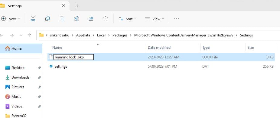 - Εδώ μετονομάστε τα αρχεία roaming.lock και settings.dat σε roaming.lock.bak και settings.dat.bak