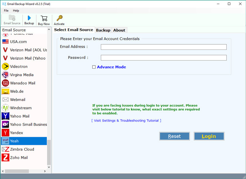 ΧρήσηΟδηγός αντιγράφων ασφαλείας email. Πρόκειται για μια αξιόπιστη και ισχυρή λύση που δημιουργεί αντίγραφα ασφαλείας yeah.net στον υπολογιστή απευθείας. Κατεβάζει τα μηνύματα ηλεκτρονικού ταχυδρομείου μαζί με συνημμένα. Για να μάθετε περισσότερα σχετικά με αυτήν την χρησιμότητα, διαβάστε την ακόλουθη ενότητα.