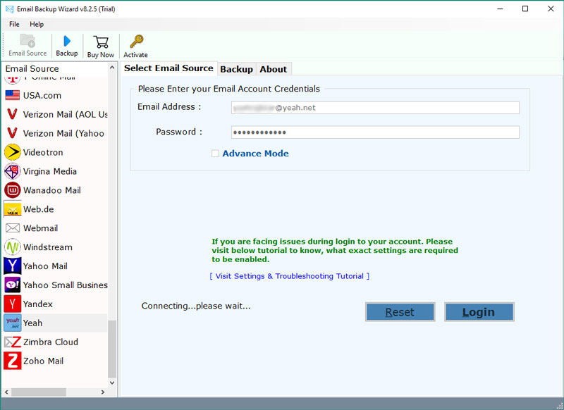 Βήμα 2.Τώρα, εισαγάγετε τις λεπτομέρειες του λογαριασμού ηλεκτρονικού ταχυδρομείου Yeah.net στον πίνακα διεπαφής λογισμικού.