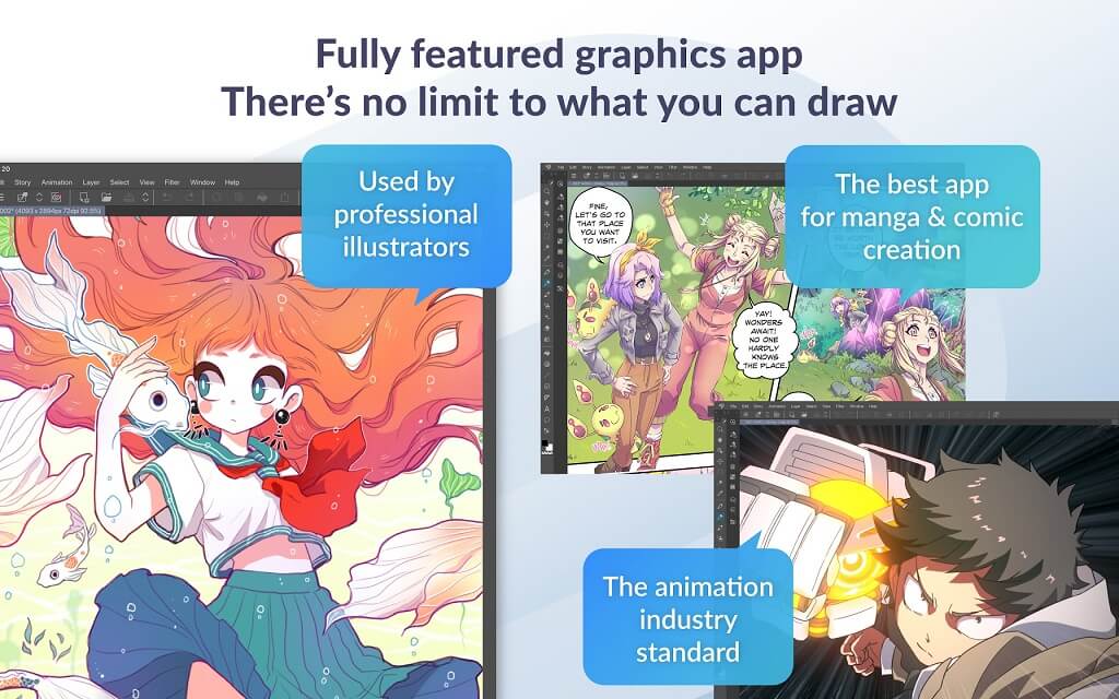 Το Clip Studio Paint είναι μια εφαρμογή τέχνης σχεδόν επαγγελματικής ποιότητας με πάνω από 40.000 βούρτσες και εκατοντάδες χαρακτηριστικά για να σας δώσει την άκρη κατά τη δημιουργία τέχνης. Η εφαρμογή υποστηρίζει επίσης γραφικά Raster και Vector και ένα ευρύ φάσμα 3D μορφών.