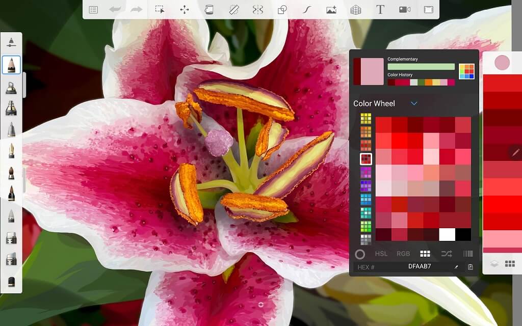 Πλεονεκτήματα:Πάνω από 80 βούρτσες και άλλα εργαλεία σχεδίασης, υποστήριξη στρώματος (και λειτουργίες ανάμειξης) και εξαγωγές σε πολλαπλές μορφές, όπως JPEG, PNG ή PSD για εισαγωγή στο Adobe Photoshop.