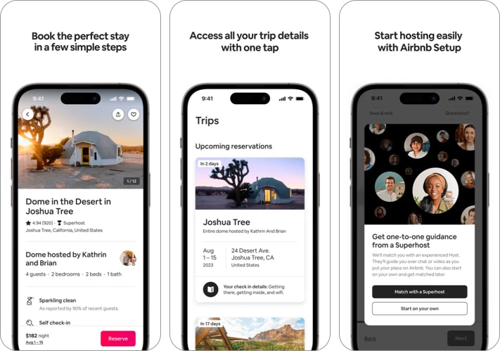 Αποθηκεύστε τα αγαπημένα σας ξενοδοχεία και τα στοιχεία πληρωμής για έναν εύκολο τρόπο για να κλείσετε ξανά το δρόμο. Μπορείτε επίσης να λάβετε ειδοποιήσεις σχετικά με τη διαμονή σας, να επικοινωνήσετε με τον κεντρικό υπολογιστή ή τον ιδιοκτήτη απευθείας από την εφαρμογή και να ακυρώσετε δωρεάν στις περισσότερες τοποθεσίες εάν αλλάξετε τα σχέδιά σας.