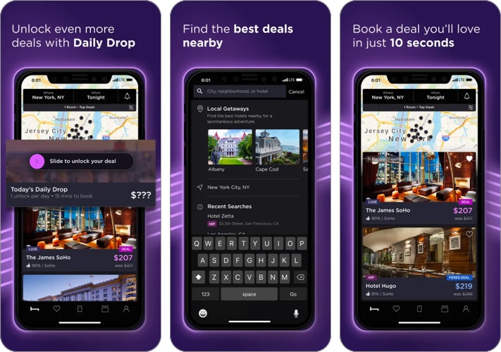 Προορίζεται να σας βρει τις καλύτερες προσφορές σε καταλύματα, το Hotwire είναι ιδανικό για ταξιδιώτες τελευταίας στιγμής. Θα δείτε μειωμένες τιμές και κουπόνια ειδικά για την εφαρμογή, τα οποία μπορούν να σας εξοικονομήσουν κάποια σκληρά κερδισμένα μετρητά.