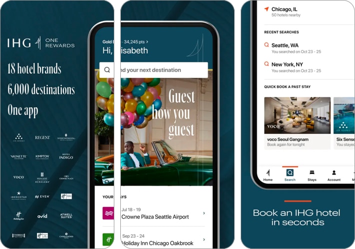 Μπορείτε να πάρετε υπενθυμίσεις και κατευθύνσεις ταξιδιού, να δείτε τις ανέσεις και τις επιλογές για φαγητό και να επαναλάβετε τα αγαπημένα σας ξενοδοχεία με ευκολία. Πολλές επιλογές κρατήσεων προσφέρουν δωρεάν ακυρώσεις εάν έχετε μια τελευταία στιγμή αλλαγή σχεδίων. Μπορείτε επίσης να απολαύσετε οφέλη ανταμοιβής και να ανοίξετε την κάρτα IHG One Rewards στο πορτοφόλι σας για γρήγορη πρόσβαση.