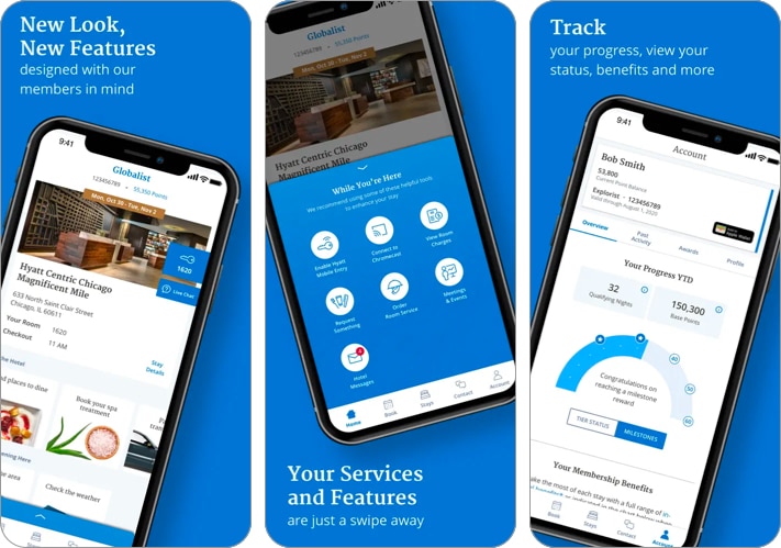 Εξερευνήστε τις ανέσεις του ξενοδοχείου, τις φωτογραφίες και τα κοντινά αξιοθέατα. Αποθηκεύστε τα αγαπημένα σας καταλύματα, δείτε τις χρεώσεις δωματίου σε πραγματικό χρόνο, χρησιμοποιήστε το express check-in και το check-out και προσθέστε κρατήσεις στο πορτοφόλι της Apple. Μπορείτε επίσης να ζητήσετε αντικείμενα για το δωμάτιό σας σε υποστηριζόμενες τοποθεσίες, όπως επιπλέον πετσέτες, και να απολαύσετε γρήγορη είσοδο Hyatt Mobile.