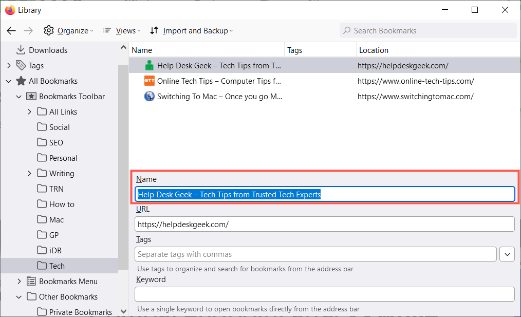 7. Δώστε στους σελιδοδείκτες σας σημαντικά ονόματα
