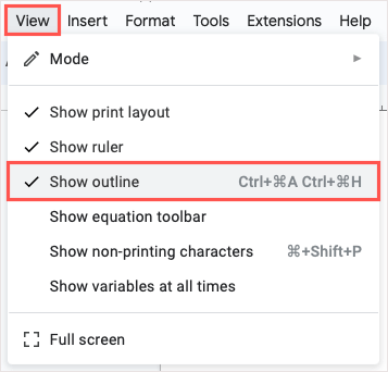Στη συνέχεια, θα δείτε τοΕμφάνιση περιγράμματος εγγράφωνεικονίδιο στο επάνω αριστερό μέρος του χώρου του εγγράφου. Επιλέξτε το για να το επεκτείνετε.