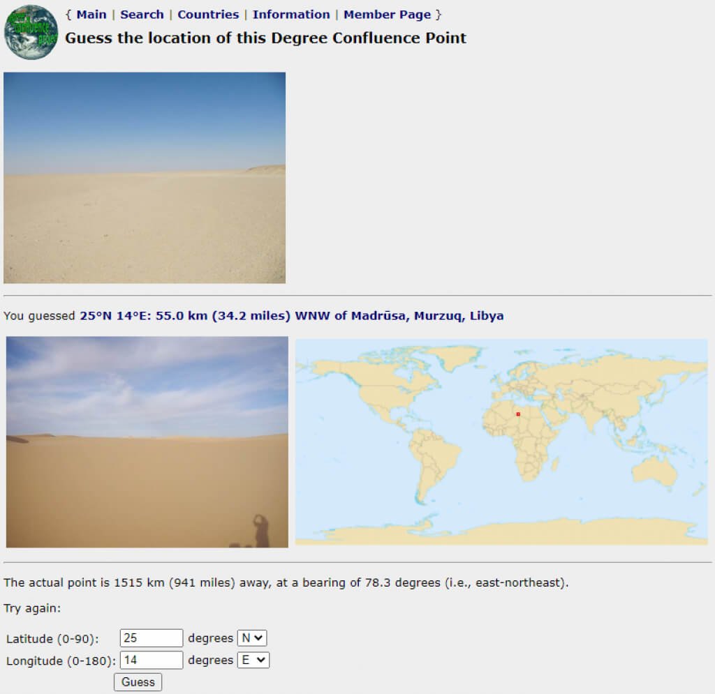 Σε αυτό το σχετικό παιχνίδι, πρέπει να μαντέψετε τη θέση ενός σημείου συρροής βαθμού που βασίζεται στα φυσικά χαρακτηριστικά που βλέπετε στη φωτογραφία του. Για να μαντέψετε, εισαγάγετε ένα γεωγραφικό πλάτος και γεωγραφικό μήκος.