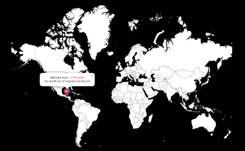 Η σωστή απάντηση θα μπορούσε να είναι οπουδήποτε στον παγκόσμιο χάρτη. Βρίσκετε ενδείξεις μετακινώντας. Δεν χρειάζεται να γνωρίζετε το όνομα της χώρας - κάντε κλικ στο χάρτη για να επιλέξετε μια τοποθεσία για να μαντέψετε. Ένα διαφορετικό παιχνίδι είναι διαθέσιμο κάθε μέρα.