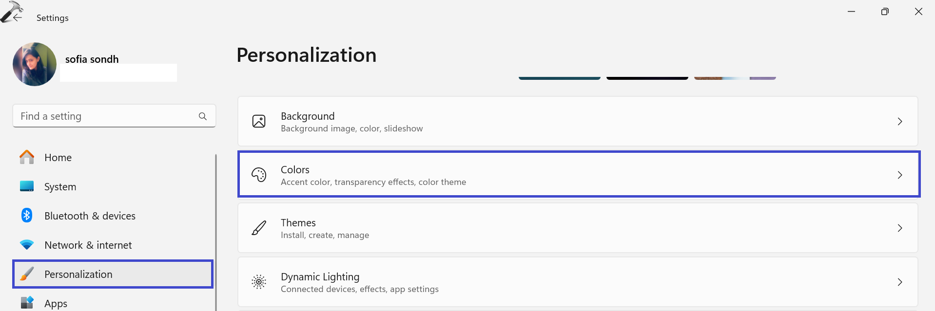 1. Περιηγηθείτε στο "Ρυθμίσεις => Εξατομίκευση => Χρώματα ".