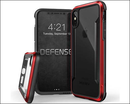 Το κάλυμμα διασκορπίζει αποτελεσματικά το σοκ και τα ψιθυρίζει. Η πιστοποίηση στρατιωτικής ποιότητας (MIL-STD-810G) επιτρέπει στην υπόθεση να αντέχει σταγόνες έως και 10 πόδια. Χαρακτηριστικά στην άκρη, η σειρά Defense Shield έρχεται σε πέντε παραλλαγές χρωμάτων, όπως μαύρο, μοβ, κόκκινο, ροζ χρυσό και ιριδίζοντα.