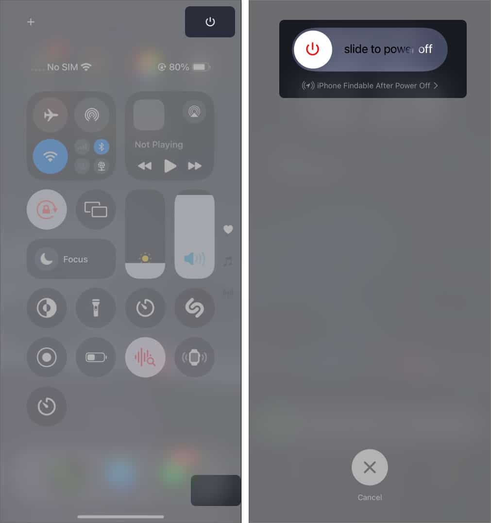 - Απενεργοποιήστε το iPhone μέσω του κέντρου ελέγχου