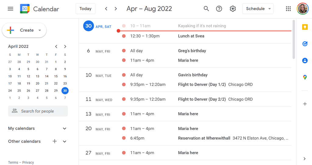 Μπορείτε να αποκτήσετε πρόσβαση στο Google Calendar μέσω του προγράμματος περιήγησης στο Web, οπότε δεν έχει σημασία αν βρίσκεστε σε έναν υπολογιστή Windows ή σε μια συσκευή Android ή Apple. Σημειώστε ότι οι συντομεύσεις πληκτρολογίου λειτουργούν μόνο όταν χρησιμοποιείτε έναν υπολογιστή. Αυτές οι συντομεύσεις πληκτρολογίου δεν θα λειτουργήσουν στο iPad σας.