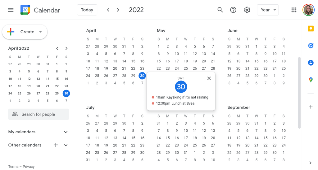 - Επόμενη περίοδος:Τύποςnήj. Όπως θα φανταζόσαστε, αυτή η συντόμευση θα εμφανίσει την επόμενη περίοδο σε οποιαδήποτε προβολή ημερολογίου είναι ενεργή. Έτσι, εάν βλέπετε το 2022 στην προβολή του έτους και πατάτε το N ή J, η Google θα εμφανίσει το ημερολόγιο για το 2023.